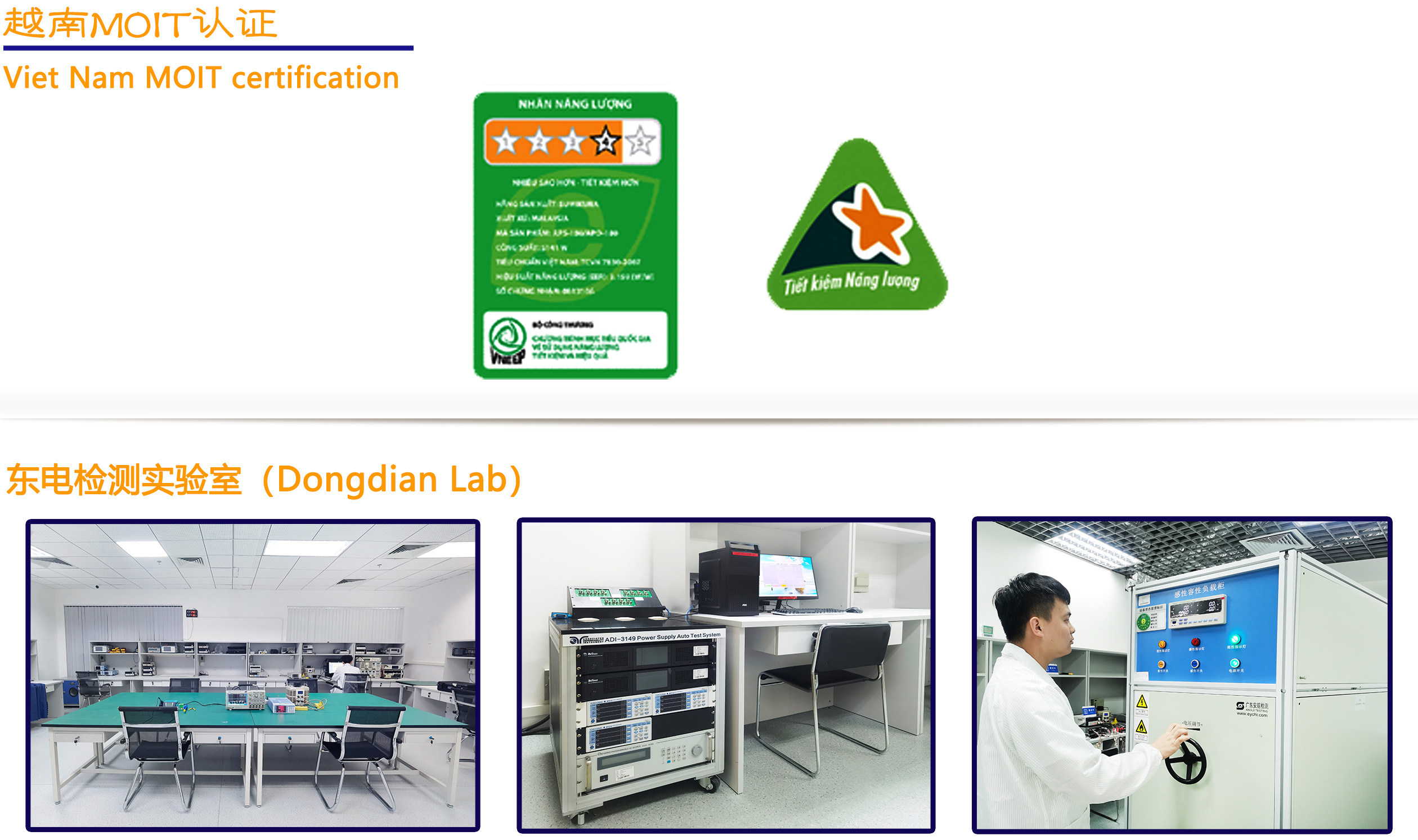 越南能效标志认证是由越南国家工商贸易部(MOIT)颁发实施的强制性认证;MOIT负责监管越南所有能源产业,包括电力、新能源和可再生能源等,并制定实施相关法律政策和发展战略;2013年起,越南就已针对家用电器产品开始实施强制能效标签计划,如今,为了加强环保节能的政策推行,越南政府对能效认证管控范围内的产品推行最低能效标准,此次根据越南贸易和工业部(MOIT)第03/2013/QD-TTg决议的强制要求,2015年1月1日起,其能效等级低于最低能效标准(MEPS)的电器产品将被禁止进口和生产;只有通过测试,获取能效证书,并加贴能效标签的相关产品才可在越南市场上流通销售;没有标签的产品或戴上虚假信息标签,罚款从20 - 7000万越南盾。