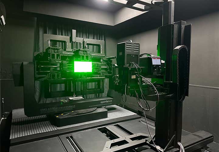 东电检测显示设备光学特性测量系统目前已正式投入使用。本系统可用于测量32~65寸LCD背光源、LCD模组及显示屏、OLED模组及显示屏等显示设备的光、色、电性能,同时兼容手机、平板、车载显示等中小尺寸显示器的自动化测试。