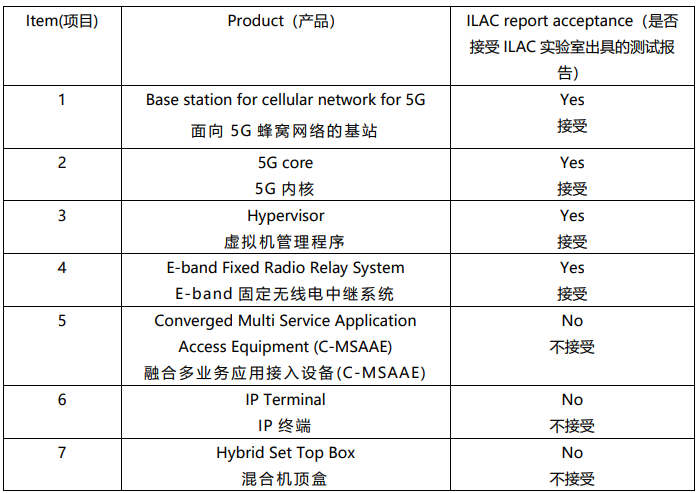 下表中列出的产品的技术参数,接受非边境共享国家的ILAC认可实验室出具的测试报告的截止日期已从2023年6月30日延长至2023年12月31日。