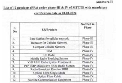 印度TEC自2024年7月1日起强制执行MTCTE第五阶段产品