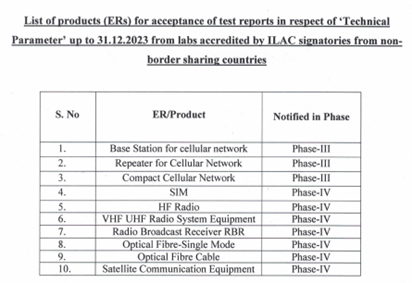 印度电信工程中心(TEC)于2023年6月23日发布通知,宣布了部分第三第四阶段产品的强制实行日期的延期通知。以下修正案已经发布并立即生效: