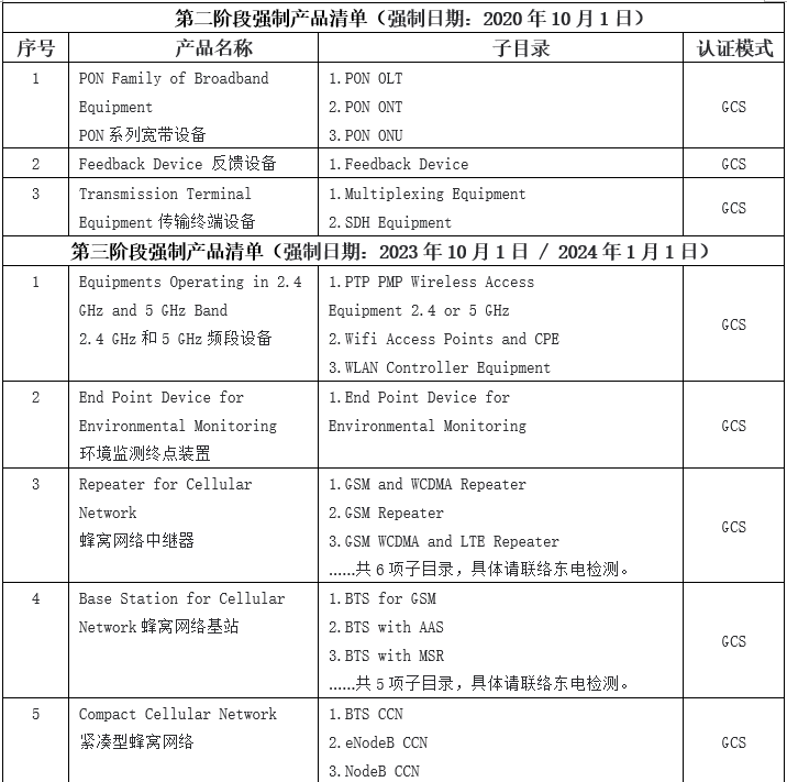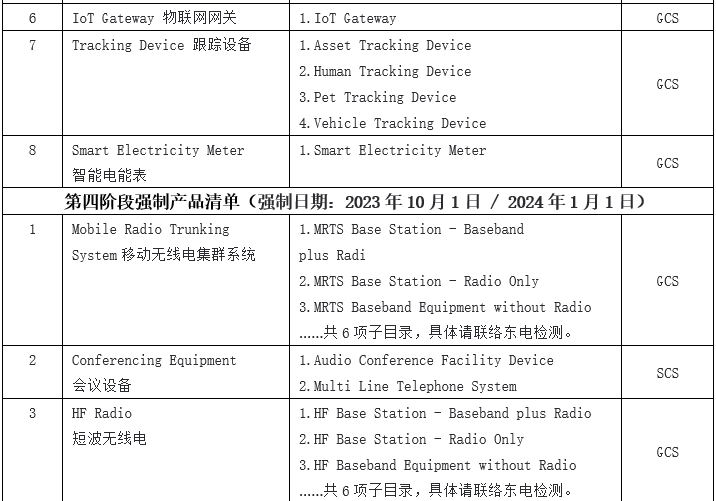 目前,TEC已经出台了四批强制产品列表,包括各种电话机,传真机,多媒体会议设备,物联网网关,路由器,追踪设备,通讯设备,2.4GH和5GHz设备等等,详见如下表1所列。