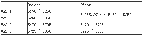 1、自2018年6月27日起,WLAN 5GHz频段变更,允许信道带宽增加到160MHz,放宽了对功率和天线增益的要求。
