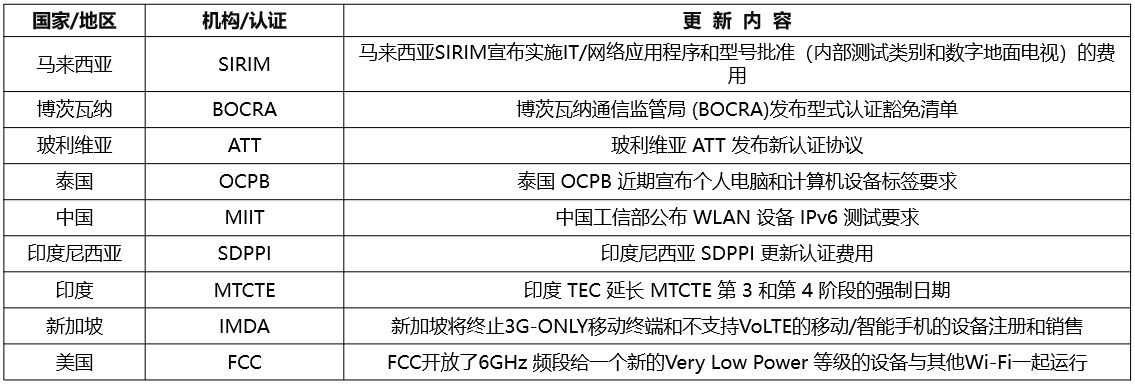 2023年8月1日,博茨瓦纳通信监管局 (BOCRA)基于2023版型式批准指南发布通知,宣布部分通讯设备可豁免申请型式批准。
