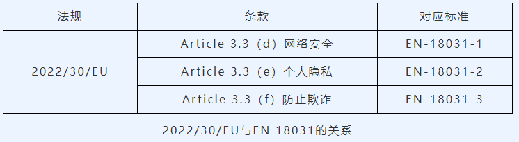EN 18031标准分为EN 18031-1/2/3三部分,分别对应RED指令中的要求。