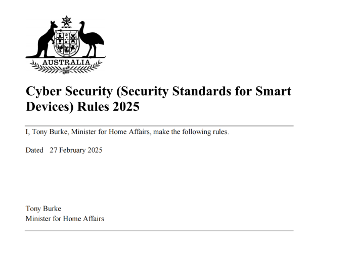澳大利亚内政部长托尼·伯克(Tony Burke)于2025年2月27日签署发布《2025年智能设备网络安全规则》(Cyber Security (Security Standards for Smart Devices) Rules 2025),该规则以《2024年网络安全法》(Cyber Security Act 2024)为立法依据,旨在强化澳大利亚市场消费级智能设备网络安全监管,核心要点如下: