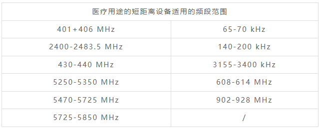医疗用途的短距离设备适用的频段范围