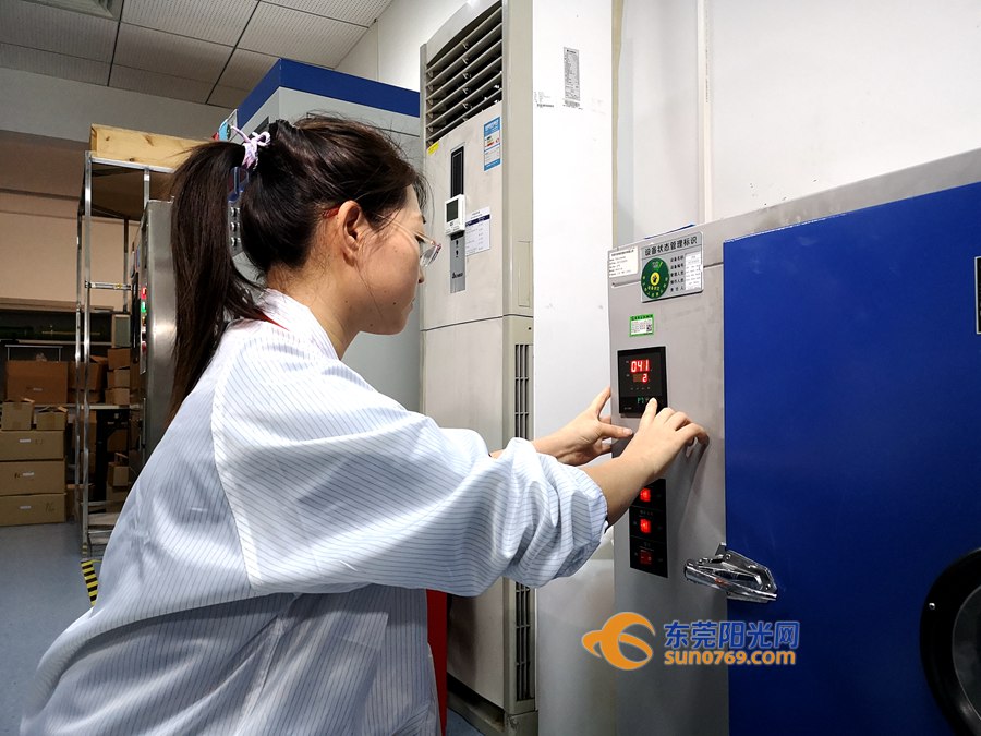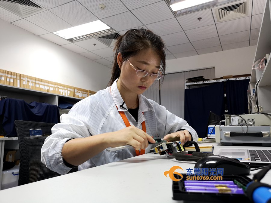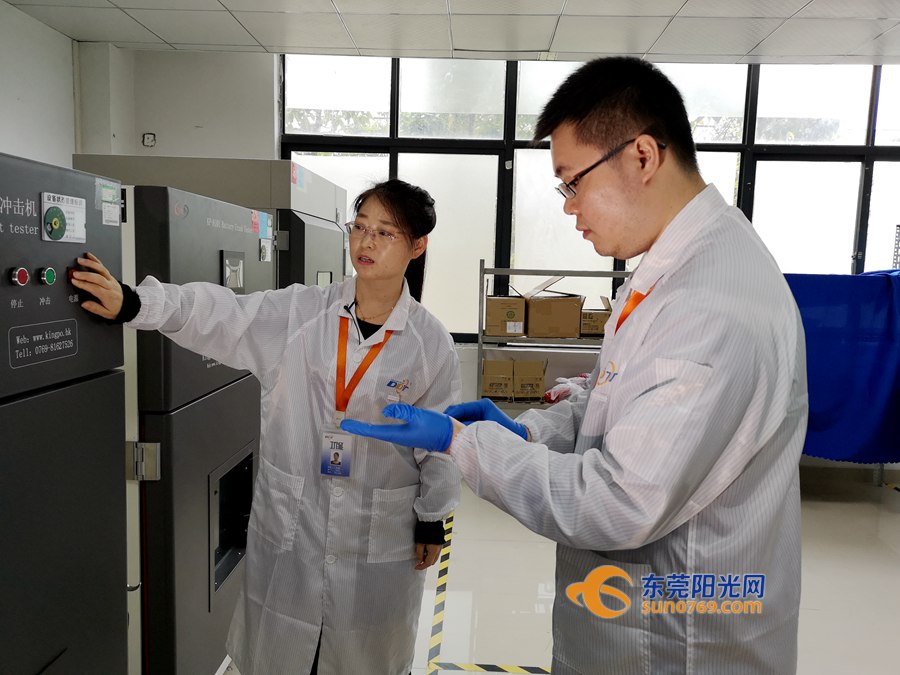 在东莞市东电检测技术有限公司的电池测试实验室里,一位身材纤瘦、绑着马尾、说话柔声细语的女生一边挑选着测试样本,一边跟同事讨论测试步骤,她就是安规工程师张丽娜。“锂电池的抗挤压、耐冲击、高温防爆性能、耐跌落等因素,都要放到不同的仪器里检测。”张丽娜指着一排测试仪器,向记者介绍自己的工作。