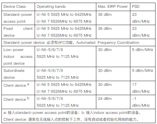 1、两种类型的设备是:1. Standard-power device; 2. Indoor low-power device。7、FCC 的法规也会做出相应的修订。