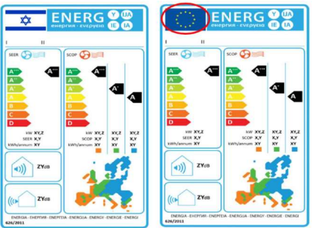 ●能量标签中的标签示例(基本参考欧盟标签要求,请留意必须展示以色列国旗,不是欧盟国旗)。
