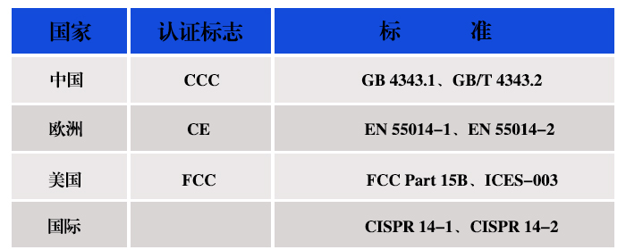 家用电器EMC主要测试标准