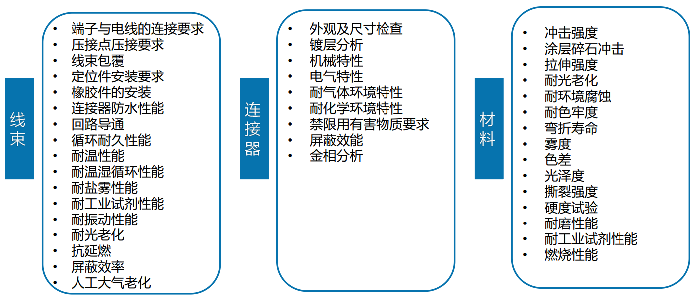 材料与线束实验室检测范围